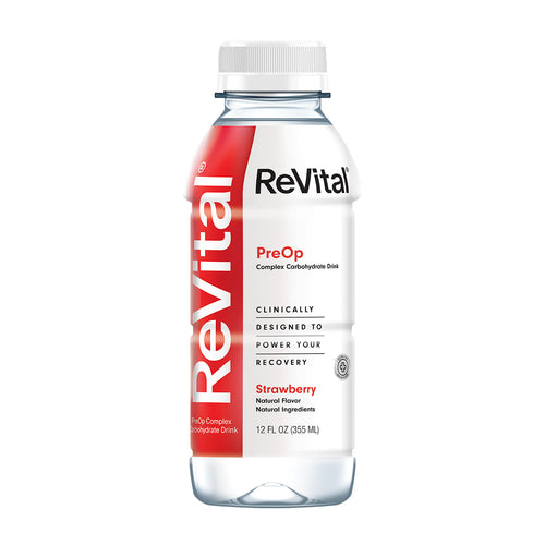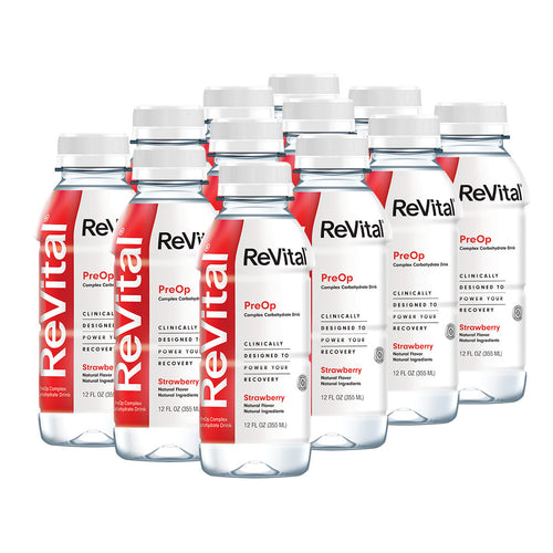 ReVital Nutritional Beverage, 12oz Clear Carbohydrate Pre-Surgery PreOp Drink 12 Bottle CASE Kit B — Strawberry Flavor (Bulk)