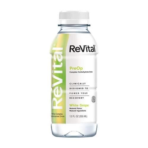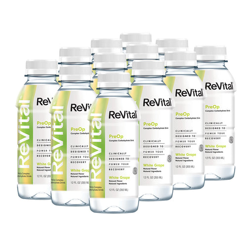 ReVital Nutritional Beverage, 12oz Clear Carbohydrate Pre-Surgery PreOp Drink 12 Bottle CASE Kit A — White Grape Flavor (Bulk)